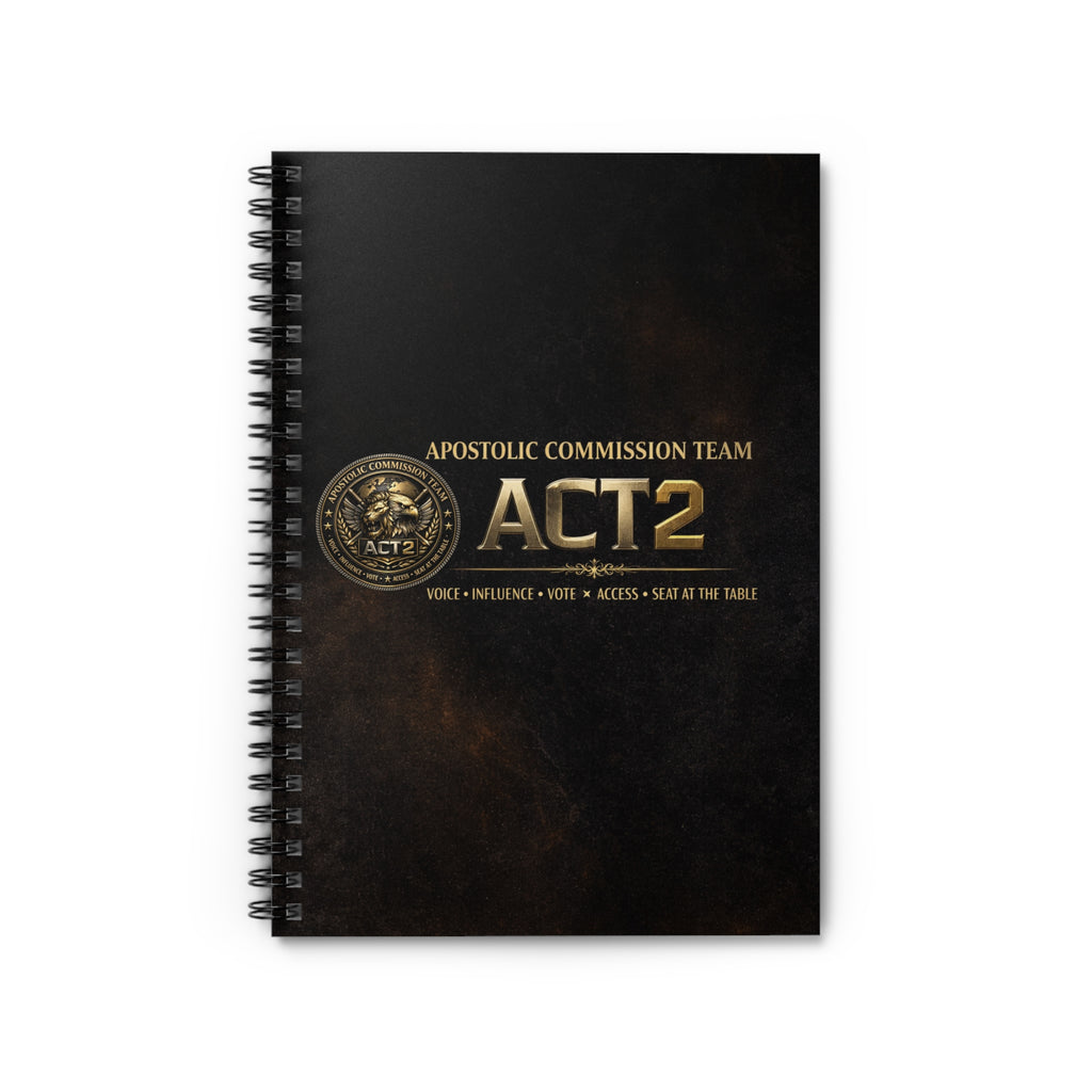 Carry a quiet confidence with this ruled spiral notebook, designed for leaders, planners, and those called to serve. The dark, textured cover and gold ACT2 emblem feel grounded and intentional — a small altar for notes, prayers, meeting minutes, or sermon ideas. The compact 6" x 8" size slips into bags and satchels, while the metal spiral lets pages lie flat for steady handwriting. Keep loose papers safe in the inner document pocket. It’s a practical companion for team gatherings, study groups, ministry planning days, and reflective moments between meetings.